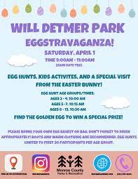 Join us at Will Detmer Park for some family fun! Activities, egg hunts, and a special visit from the Easter Bunny!Egg hunt age groups/times: